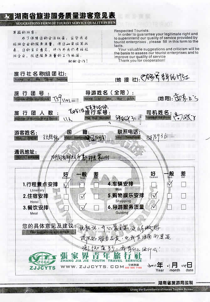 再次感謝汪先生選擇張家界青年旅行社,以及您對(duì)張家界青旅的信任與支持。我們會(huì)繼續(xù)努力,做好旅游接待工作。期待下一次與您的合作,祝您愉快!--曹娟留言